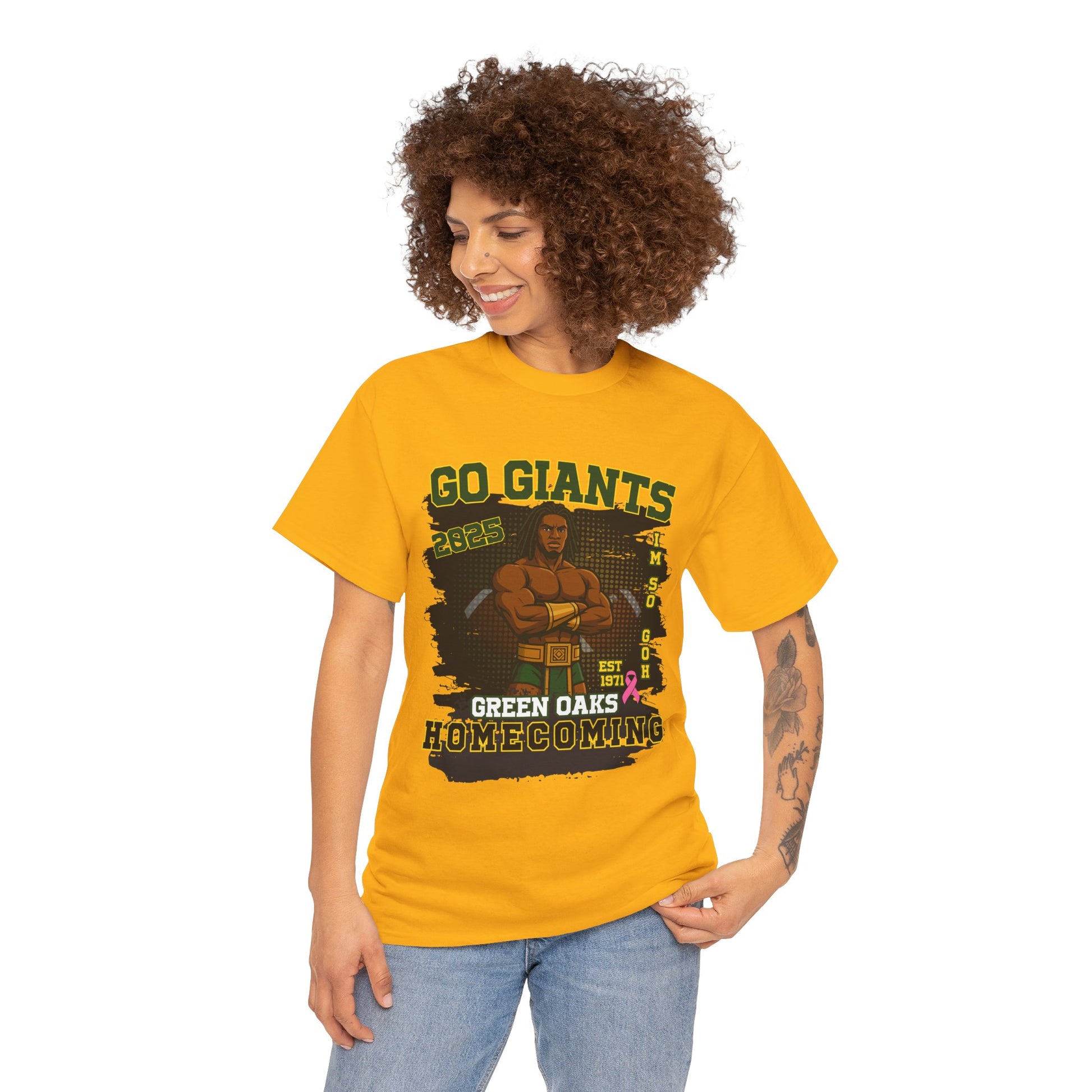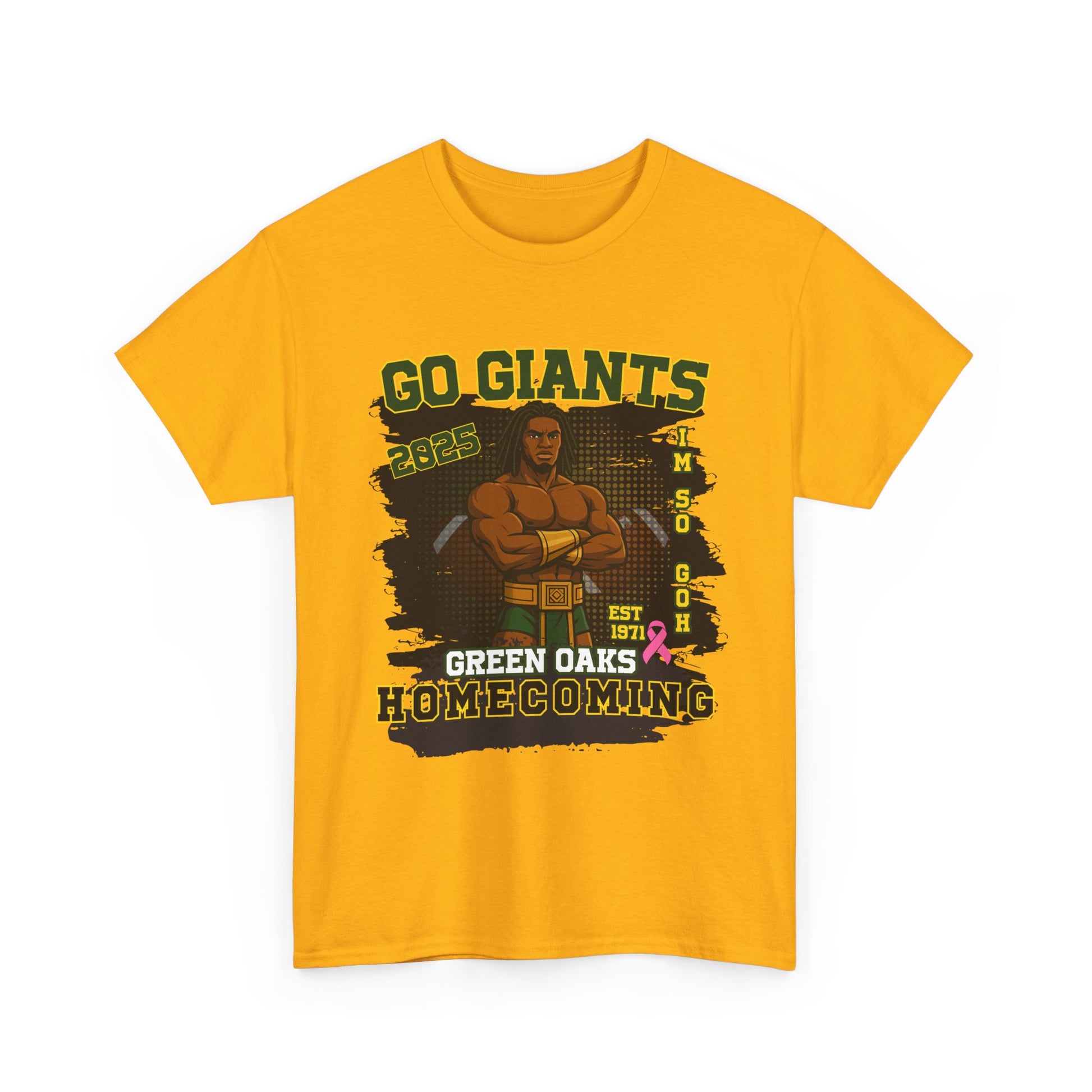 This Green Oaks Giants Homecoming Tee is a classic fit shirt made with medium fabric for year-round comfort. The crew neckline adds a neat, timeless look perfect for casual or semi-formal occasions. Ideal for adults, this tee is ethically made using 100% US cotton and certified for safety and quality assurance. Perfect for homecoming events, sports games, and casual outings.